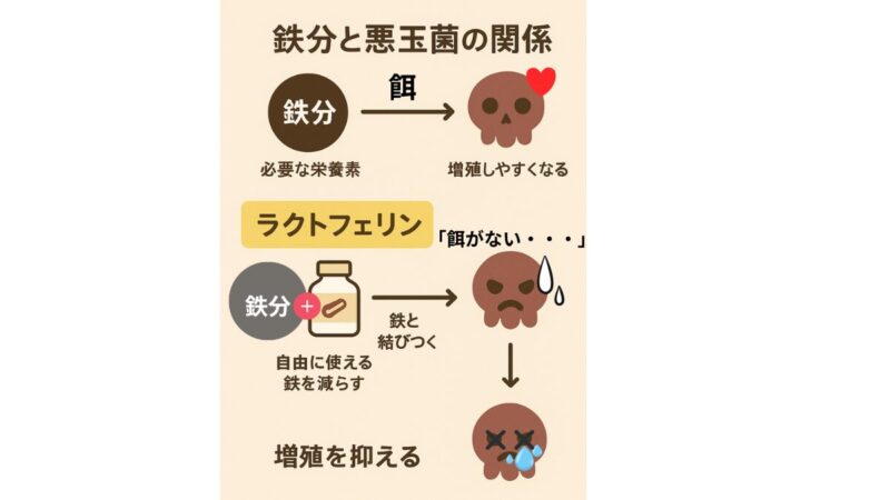 悪玉菌が利用できる“自由な鉄”が減少し、増殖が抑制されやすい状態になります。